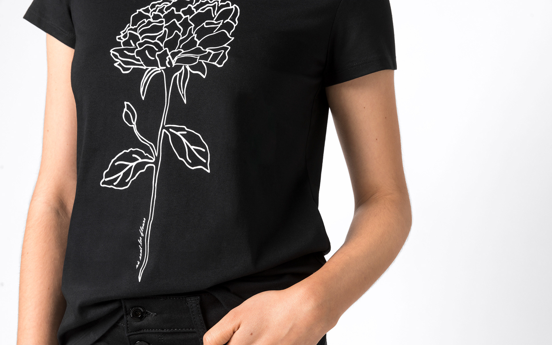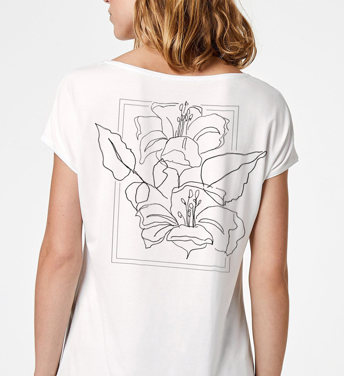 different one line illustrations screen printed on organic cotton shirts for different clients.