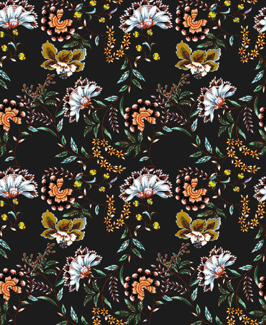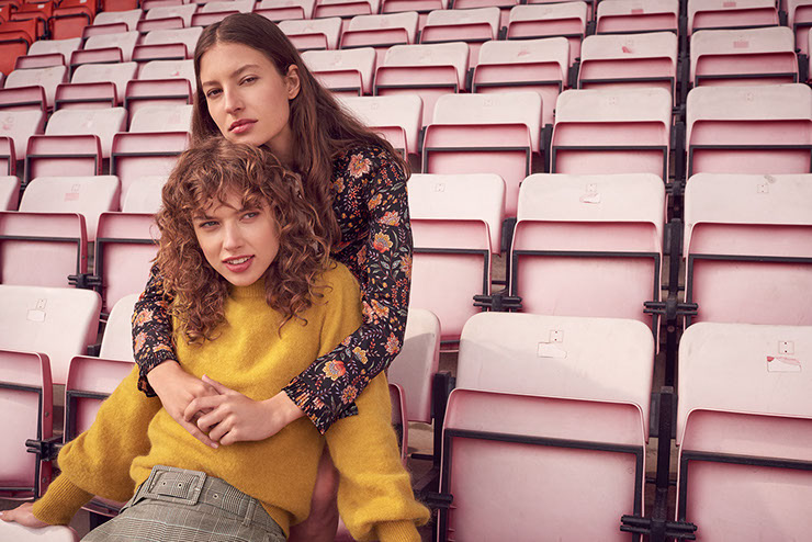 different patterns and knit styles for the label hallhuber. the fall/winter collection 2019 stands for flower prints on dark backgrounds and cozy mohair knitted sweaters.